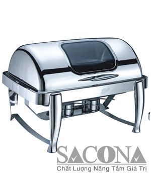 ROLL TOP CHAFING DISH WITH VISIBLE COVER / NỒI BUFFET HÂM THỨC ĂN SACONA HÌNH CHỮ NHẬT NẮP KIẾNG