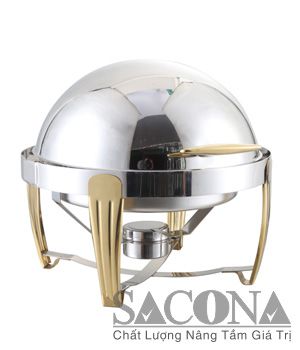 ROUND ROLL TOP CHAFING DISH WITH GOLD LEG / NỒI BUFFET HÂM THỨC ĂN SACONA TRÒN CHÂN VÀNG