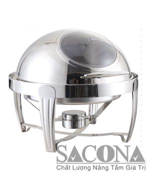 ROUND ROLL TOP CHAFING DISH WITH VISIBLE COVER / NỒI BUFFET HÂM THỨC ĂN SACONA TRÒN NẮP KÍNH